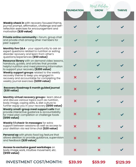 We believe in the importance of transparency and want to set clear expectations regarding the potential benefits of our membership program. This program is designed to provide additional support, encouragement, and insight for individuals in eating disorder recovery, but individual results will vary.