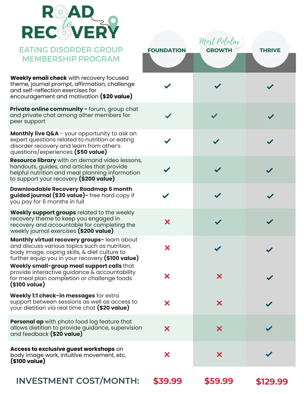 Join our Roadmap to Recovery Eating Disorder Group Membership program today and start your journey to health, hope and healing!